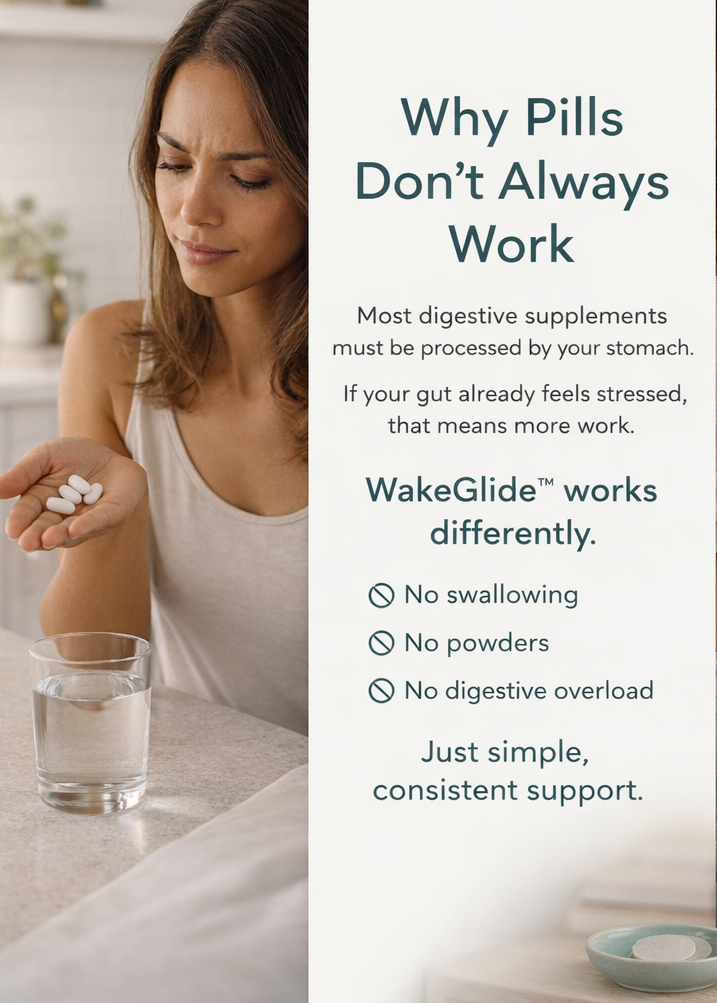 WakeGlide™ uses a steady delivery system so support doesn’t have to pass through your stomach like a pill.